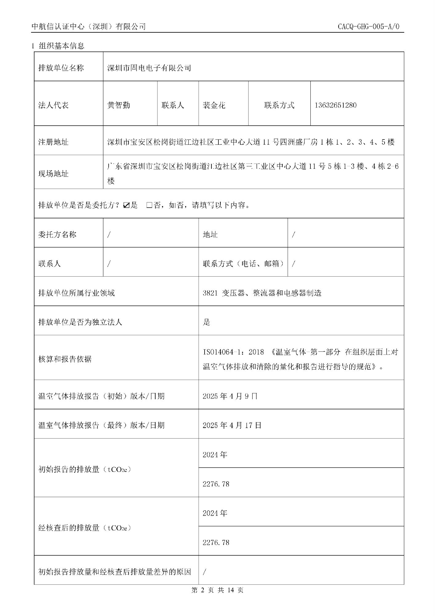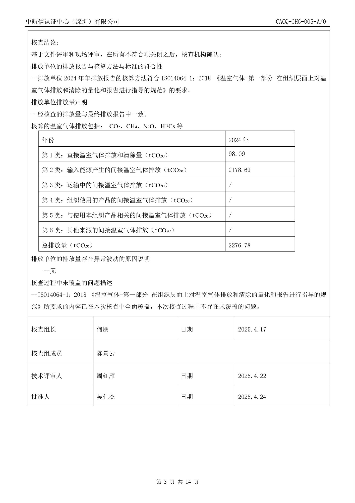 14064-温室气体碳核查报告